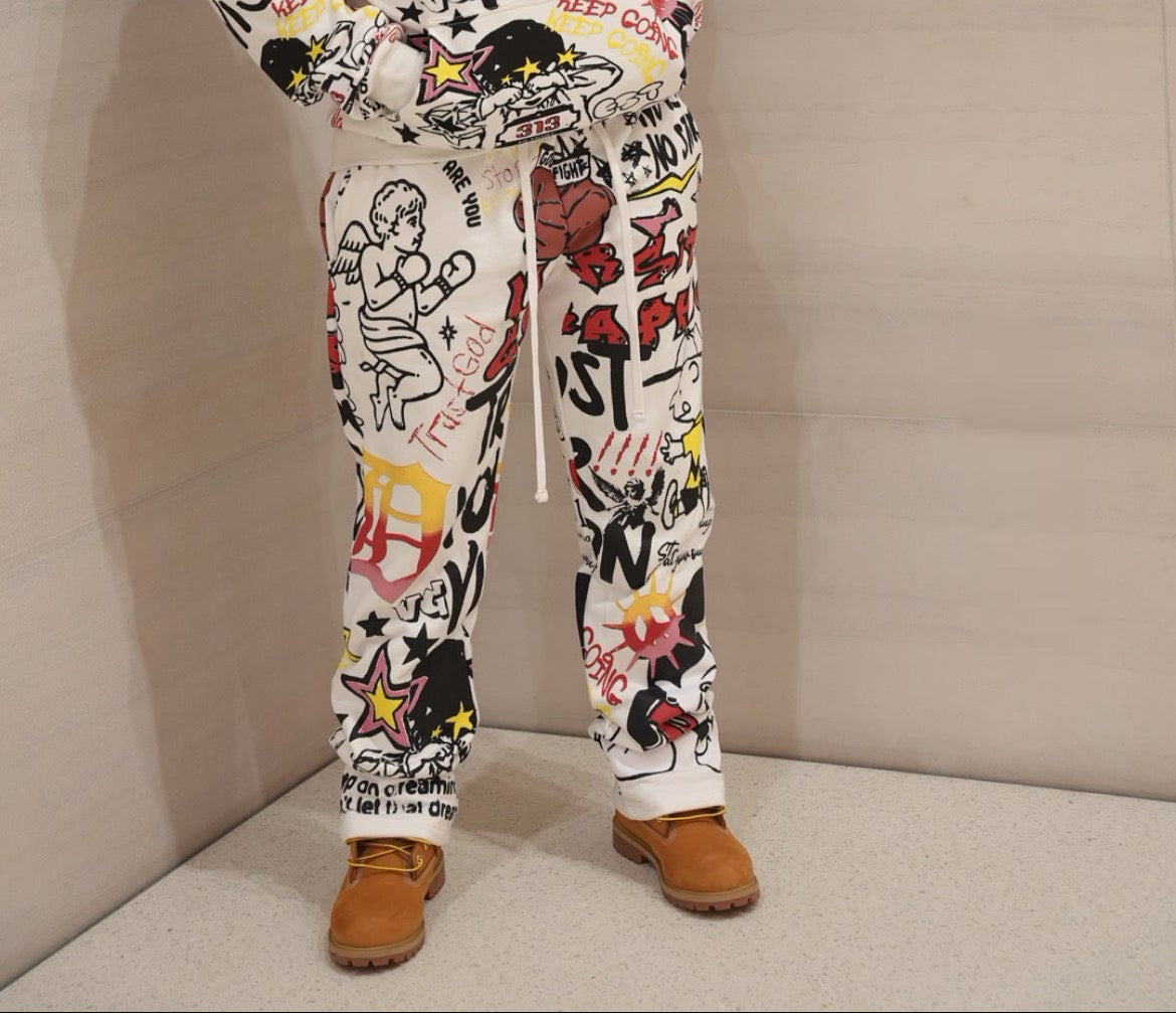 THE ALL-OVER PRINT GRAPHIC SWEATS FEATURE A FULL-COVERAGE DESIGN THAT ADDS A MODERN EDGE TO AN EVERYDAY SILHOUETTE. MADE FOR ALL-DAY WEAR, FROM OFF-DUTY MOMENTS TO FULL STREET FITS.